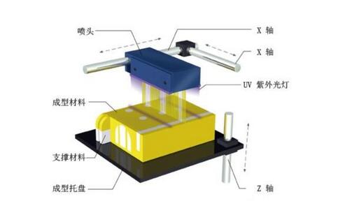 噴墨技術工藝(Polyjet)是基于噴射液滴的逐層堆積和固化的一種3D打印工藝成型技術。