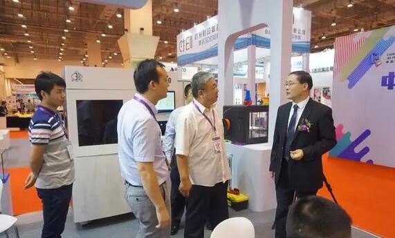 本屆3D打印節(jié)展會主辦方青島三迪時空董事長李培學陪同青島市政協(xié)副主席、廣州增材協(xié)會會長參觀了數(shù)造展位現(xiàn)場。
