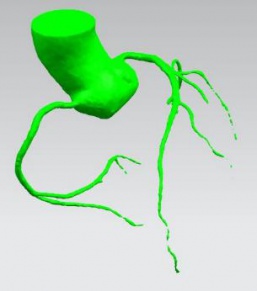 首先通過病人的心臟冠脈造影CT數據,獲取病人的心臟冠脈三維模型。